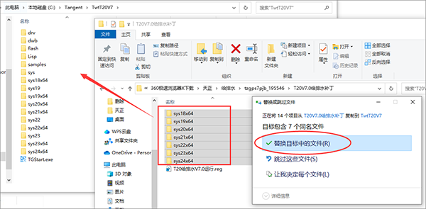 7、接下来,将补丁文件夹里面的所有文件夹,都复制到软件目录下进行替换,默认安装路径:C:\Tangent\TwtT20V7;