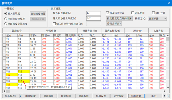 1、管网埋深模块: