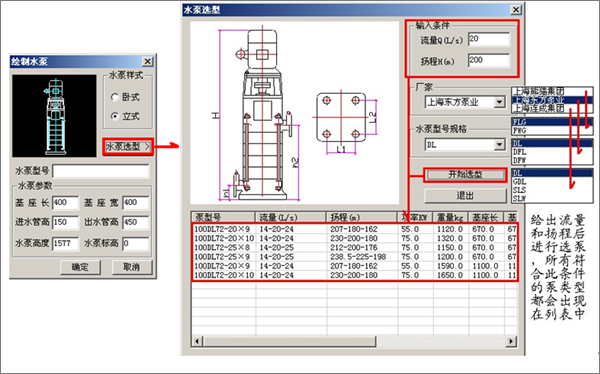 优化内容水泵选型:更新水泵选型数据库信息以及相应水泵的平面图、立面图、剖面图、安装图、三维图展现形式。