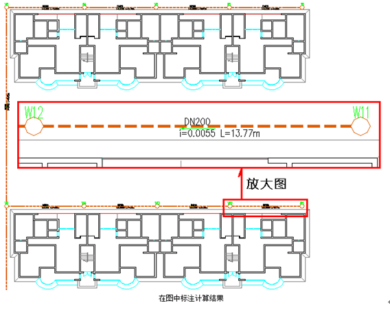 小区污水计算:通过污水流量功能在进行室外污水计算之前,确定每井的污水流量。给出每个井的流量,污水流量会显示在井上,可以方便查阅井流量的定义情况或直接修改井流量。 自动进行室外污水水力计算。计算管径、流速、充满度等,可根据需要进行复算,校核其它水力参数是否满足规范要求;然后将计算结果标注在图上,选择出WORD计算书。