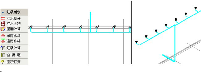 有利于大型民用院及工业院进行体育场、工业厂房等大型建筑的设计,同时可进行校验。通过汇水划分、汇水面积、屋面计算命令快速进行屋面雨水流量计算,在此基础上进行雨水斗布置以及系统悬吊管、排出管绘制,当布置好平面虹吸雨水系统后可进行虹吸雨水计算,可计算压力余量、最大负压等数值并可进行校核。