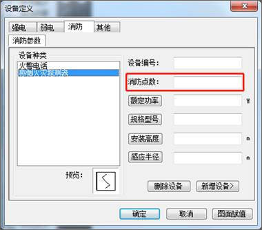 FAS火警点数计算统计功能:在【设备定义】 对话框中当切换到消防选项卡选择消防设备时,可设定消防设备的点数,之后在回路检查中可以统计到。