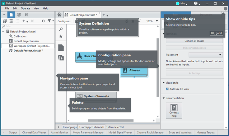 VeriStand环境由两个窗口组成,您可借此修改项目内容。