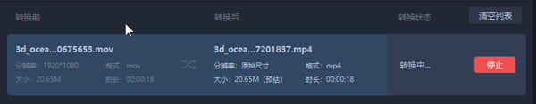开始转换后,按钮变成【停止】,点击即可终止任务;