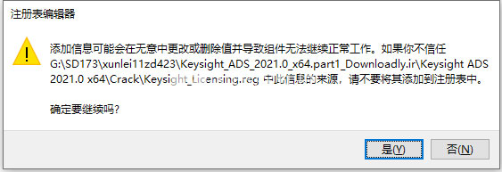 15、双击运行补丁文件夹中的Keysight_Licensing.reg注册表,确定添加;