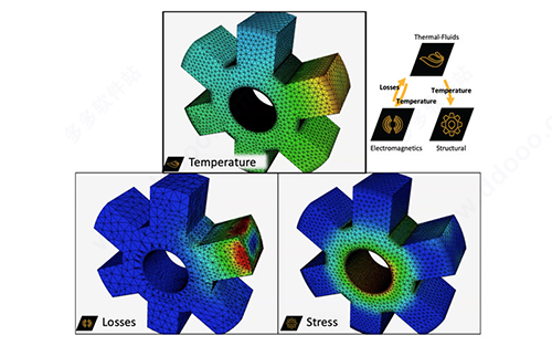 主要用于电磁场问题的分析,如电感、电容、磁通量密度、涡流、电场分布、磁力线分布、力、运动效应、电路和能量损失等。还可用于螺线管、调节器、发电机、变换器、磁体、加速器、电解槽及无损检测装置等的设计和分析领域。