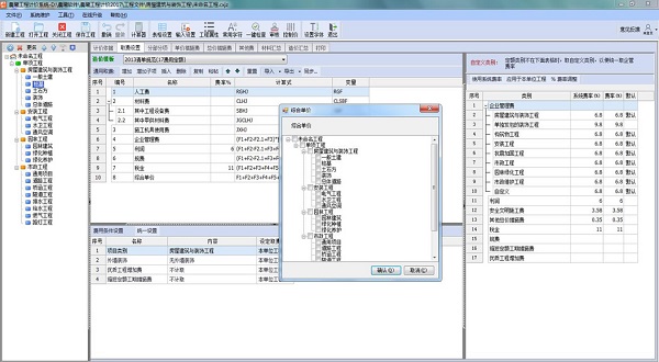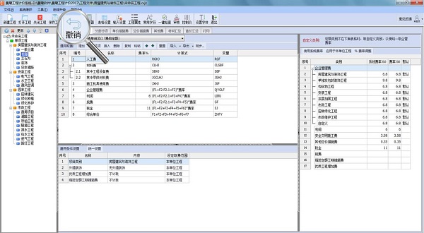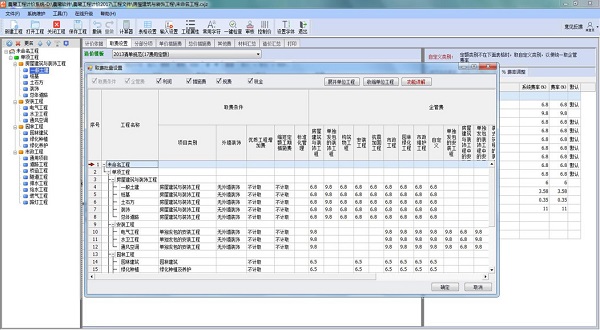 2、批量对各项费用进行取费,一步完成整个工程所有费用的取费工作,所有费用一目了然。