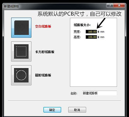 2、点击左上角的新建按钮,新建一个空白线路板,系统默认的PCB尺寸,自己可以修改