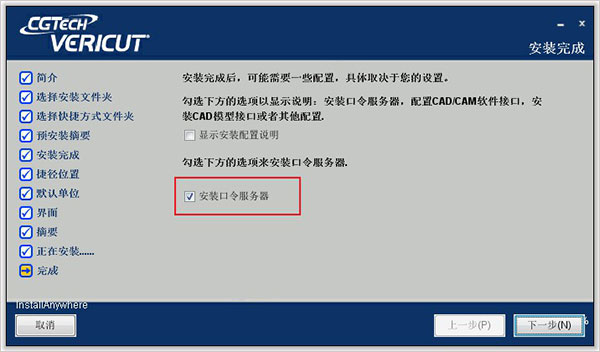 15、现在开始安装CGTech许可服务;