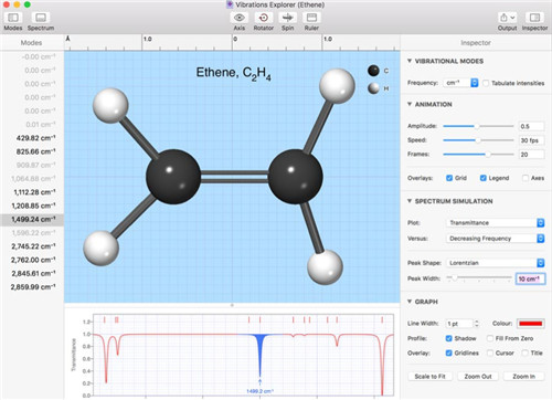 - 振动模式管理器:动态展示分子的振动模式,并生成红外光谱。