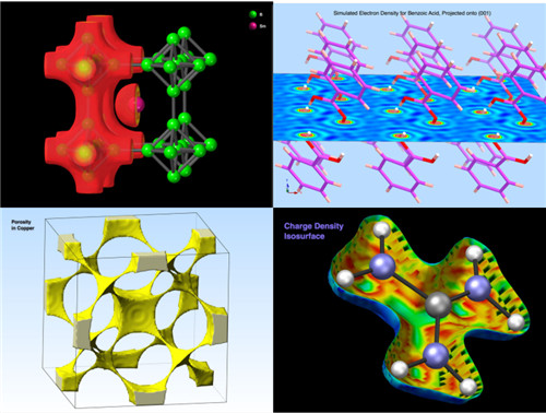 - 3D数据集显示:在同一窗口中结合晶体结构与电子密度图、孔隙率图等体积数据,支持等值面和点云渲染。