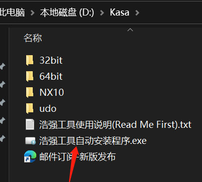 拷贝Kasa到D盘目录下,先打开NX12软件,再双击浩强工具自动安装程序.exe,点击“在已打开的NX版本上安装”按钮(安装)