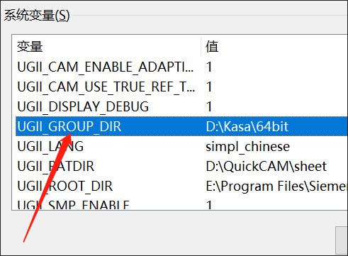新建系统变量-变量名:UGIl_GROUP_DIR变量值:D:\Kasa\64bit