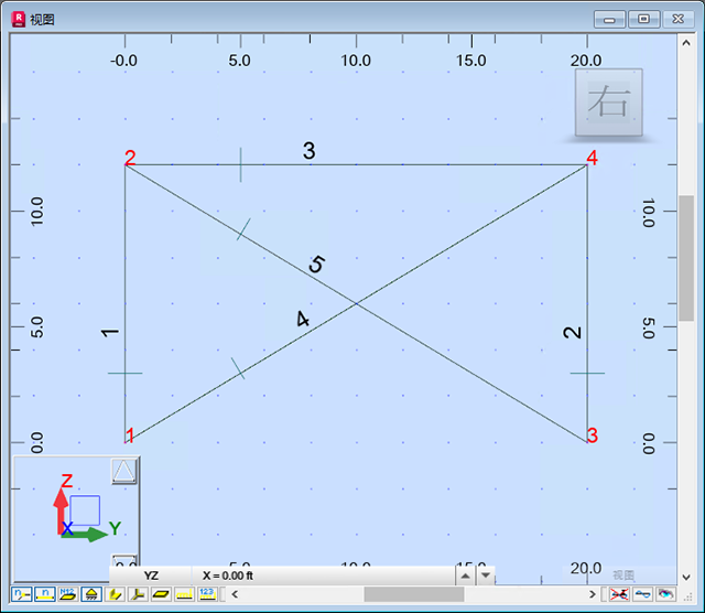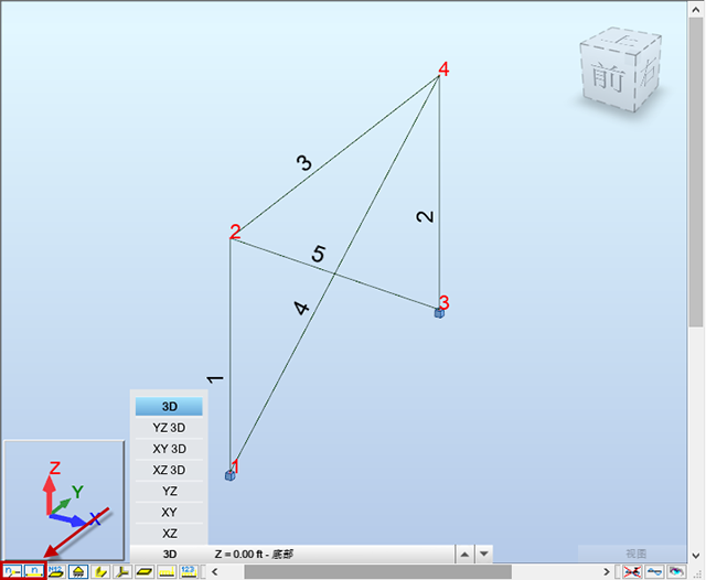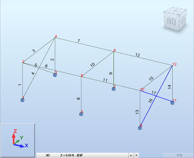 注意:如果您未看到杆件和节点编号,请单击绘图区域左下角的 和 即可显示它们。