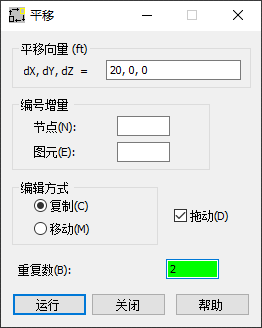 - 在“平移矢量”框中输入“20, 0, 0”,