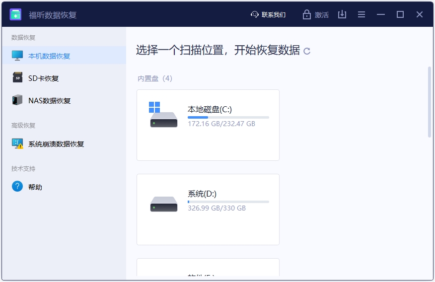 福昕数据恢复软件是由福建福昕软件开发股份有限公司独立研发的一款专业的数据恢复软件,能帮助用户恢复重要文件。软件主要具备硬盘格式化恢复、误删文件恢复、回收站文件恢复和u盘数据恢复四大核心功能,只需几个步骤就能帮助你恢复几乎所有删除/丢失的文件,如照片、文件、电子邮件、音频,视频。且支持从计算机,硬盘驱动器,闪存驱动器,存储卡,数码相机等存储设备,用户再也不用担心因病毒破坏、误删除、格式化、操作断电和系统崩溃引发的数据丢失问题,高效、简单、灵活,欢迎免费下载体验。