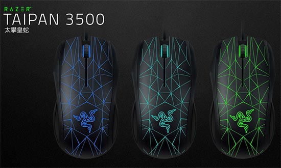 4、太攀皇蛇3500游戏鼠标配备了Chroma幻彩灯光系统,预设循环呼吸灯模式,尾部徽标和滚轮均呈发光效果,灯光细节尤其是均匀度表现优秀,不愧为灯厂。而通过雷云驱动程序,鼠标灯光颜色实现支持1680万色自定义,同时允许分区发光设置。