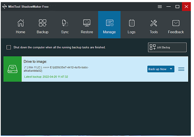 7、备份完成,关闭MiniTool ShadowMaker Free。