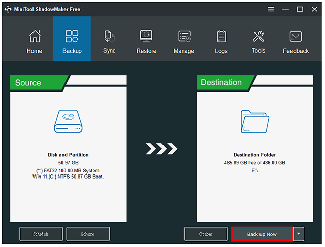 启用备份方案后,MiniTool ShadowMaker将执行完整/增量/差异备份任务,并通过删除旧备份映像文件版本来管理磁盘空间。