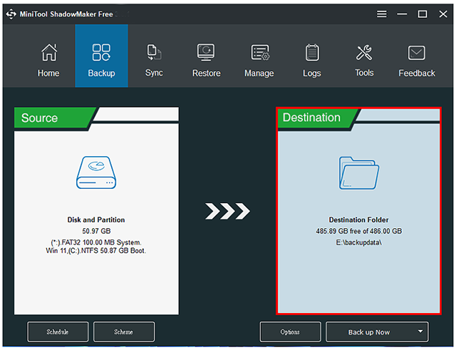MiniTool ShadowMaker free是一款非常好用的电脑数据备份软件,该软件可以帮助你备份整个Windows系统、分区甚至是整个电脑硬盘,如果你点电脑出现如系统崩溃,硬盘数据丢失等问题时,你就可以使用本软件备份的数据文件来恢复电脑,让你的电脑完好如初,同时提供完整、差异、增量和计划备份,可以轻松自定义自动备份计划。