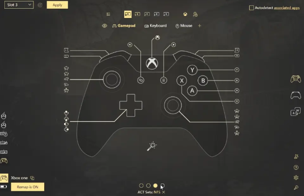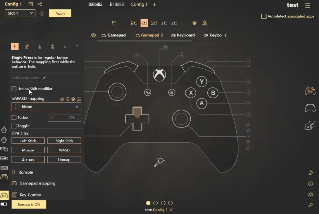 当完成Xbox控制器到键盘的映射,调整操纵杆和触发器并重新分配Xbox Elite拨片时,就该玩了!在Xbox Elite上选择一个插槽,然后单击“应用”按钮。当您看到“重新映射已启用”时,这意味着一切就绪,您就可以通过reWASD获得出色的游戏体验。