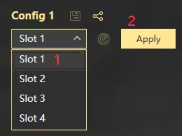 在左上角,可以选择你想保存当前的配置到哪个配置槽,选择完毕后点击应用(Apply)保存。