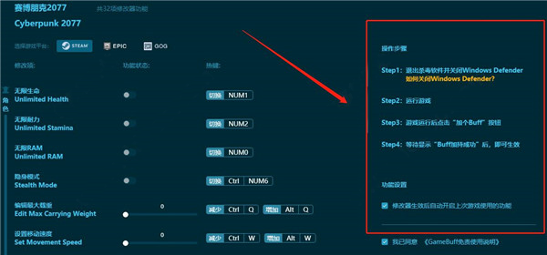 温馨提示,GameBuff修改器仅为单机游戏玩家推荐,请勿在联机游戏中使用,以免影响他人的游戏平衡和您的账号安全。