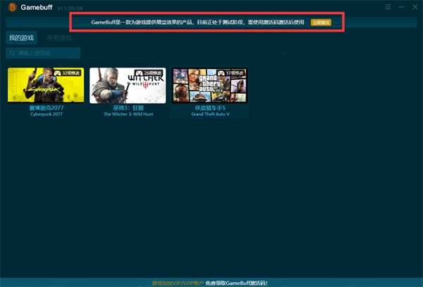 2、输入您领取到的GameBuff修改器激活码,即可激活成功;