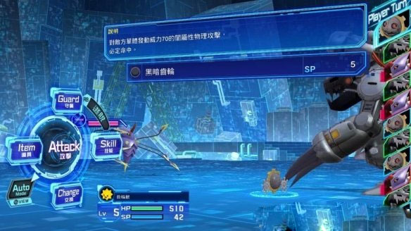 下方数码宝贝数据条显示其生命和sp,如果你队伍里的数码宝贝全部生命归0,你就战败了。