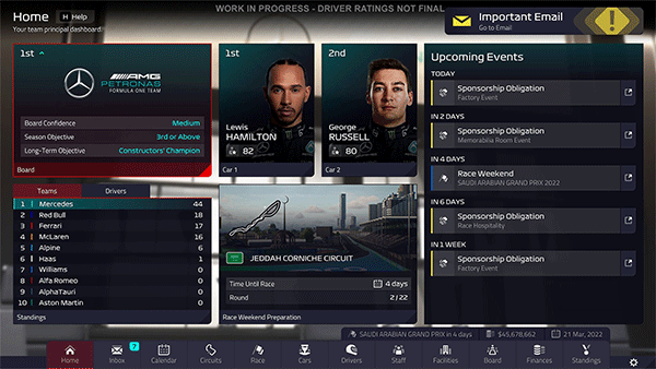 如果您已经在 F1 Manager 2022 中拥有了一些最好的车手,那么没有理由改变您的阵容。但是,您可能会抢在对手之前抢到比赛中最优秀的年轻车手之一!