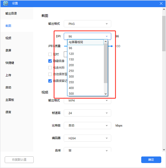 DPI的数值可在设置中进行调整,该值越高,则应用于图片打印时会越清晰。此值非适用于屏幕截图的清晰度