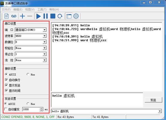 如出现 以下状态为串口打开成功,否则为不成功,虚拟机物理机选择不同的串口
