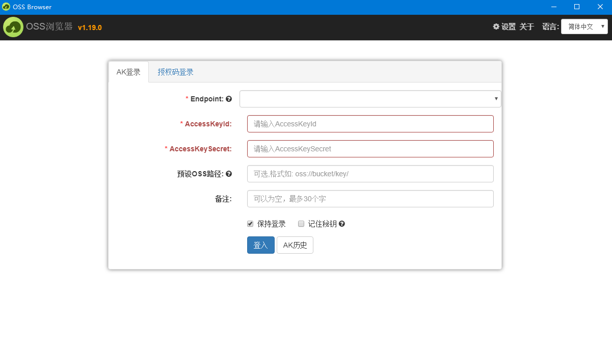 3、支持使用AK(比如子账号AK)登录使用ossbrowser