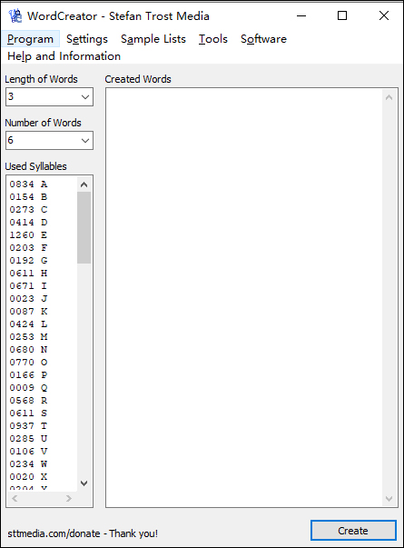 只需单击鼠标,就可以生成第一个单词或计算第一个文本(只需单击“创建”或“计数”)。尽管如此,还有许多其他自我解释设置可用,您可以在本主页的帮助部分获得更多信息。