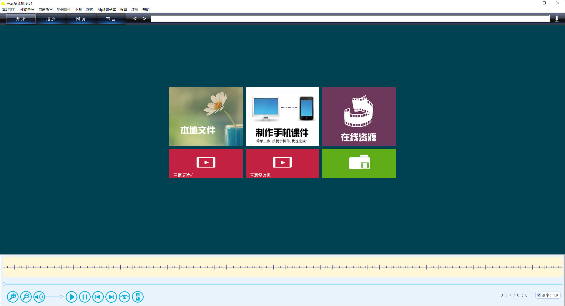 3、一键复读,轻松流畅:,据波形判断,鼠标一点,不论长短,随意复读。更有多种复读方式可以选择,任由使用者根据学习资料的特点和习惯,选择方法,自由组合,轻松操作,非常容易上手