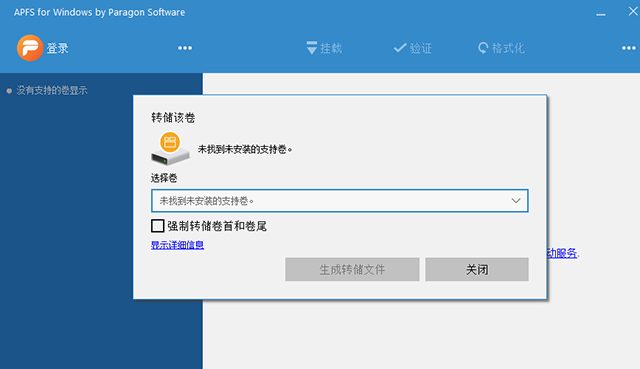 我们的驱动程序只能与驻留在单个物理存储上的APFS容器一起使用,尚不支持其他配置。