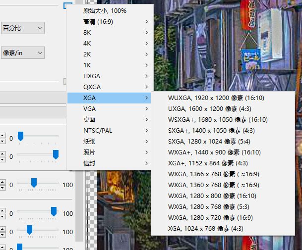 或者使用photozoom预设的大小,如图所示,展开尺寸的更多选项,可选择不同的预设尺寸,比图桌面、照片、高清图像等。