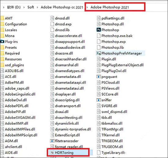 5、然后将【HDRToning.jsx】粘贴至Adobe Photoshop 2021目录下