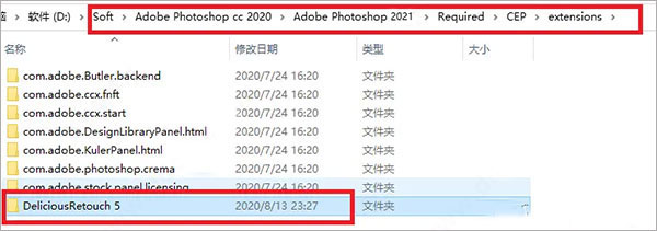 4、如果不清楚的朋友可以以小编为例,将文件复制至Adobe Photoshop 2021-Required-CEP-extensions目录下
