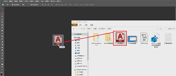 6、运行PS主程序,将软件包中的DR5预设.pat拖曳至软件主页面中