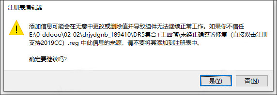 2、之后直接点击运行【未经正确签署修复(直接双击注册).reg】进行安装注册