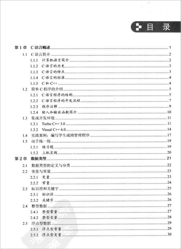 《轻松学C语言编程》从初学者的角度出发,以通俗易懂的语言、丰富多彩的实例,详细介绍了使用C语言进行程序开发应该掌握的各方面知识。全书共14章,首先介绍了C语言的基础知识,包括C语言的历史和特点、C程序的结构和开发流程、C语言的数据类型、变量、常量、运算符以及表达式等;然后重点对C程序的编写进行讲解,包括算法与顺序结构、分支语句、循环语句、数组和函数的应用等;另外,还对C语言中的指针、结构体、预处理指令、字符串和文件操作进行了简单介绍;最后通过一个综合案例介绍C语言在实际开发中的应用。
