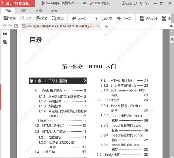 - 第2章:学习HTML的基础语法,包括文档结构、标签嵌套规则等。