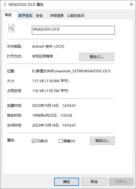 兼容性问题 依赖于msadodc.ocx的软件可能与您计算机上安装的文件版本不兼容,从而导致错误。