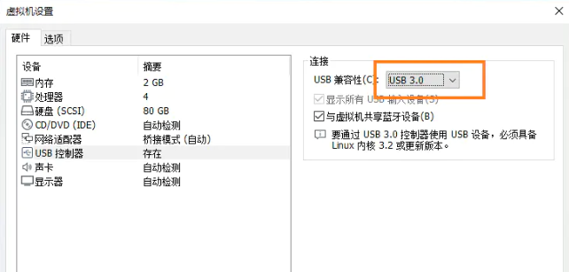 1、首先打开虚拟机设置 - 硬件 - USB控制器,然后修改为“USB3.0”;