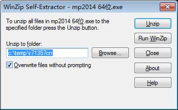 3、解压驱动,点击unzip,默认解压在框中的路径【c:\temp\r71357cn】