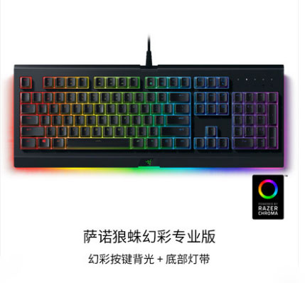 雷蛇萨诺狼蛛幻彩专业版是一款机械键盘,该键盘不仅性能强大,并且将个性化提升到了一个新层次,能够提供优越的游戏性能,还具备众多自定义选项,包括独立按键和具备全光谱色彩的底光。