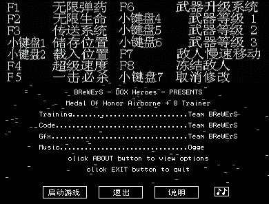 荣誉勋章空降神兵8项修改器功能如下: