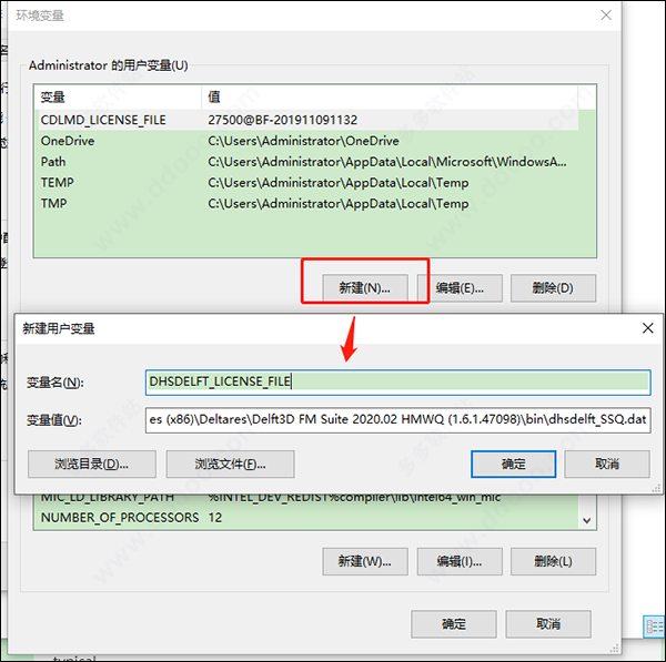 8、接着创建指向dhsdelft_SSQ.dat的用户环境变量DHSDELFT_LICENSE_FILE