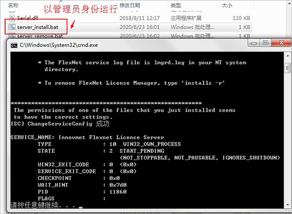 6、以管理员身份运行 \ bin \ server_install.bat并等到安装并启动许可证服务器;